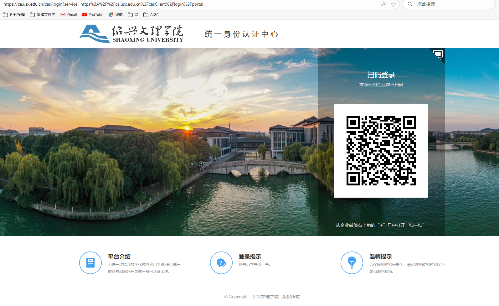 1.打开浏览器,输入网址:https://ca.usx.edu.cn/cas/。如下图,企业微信扫码登录。