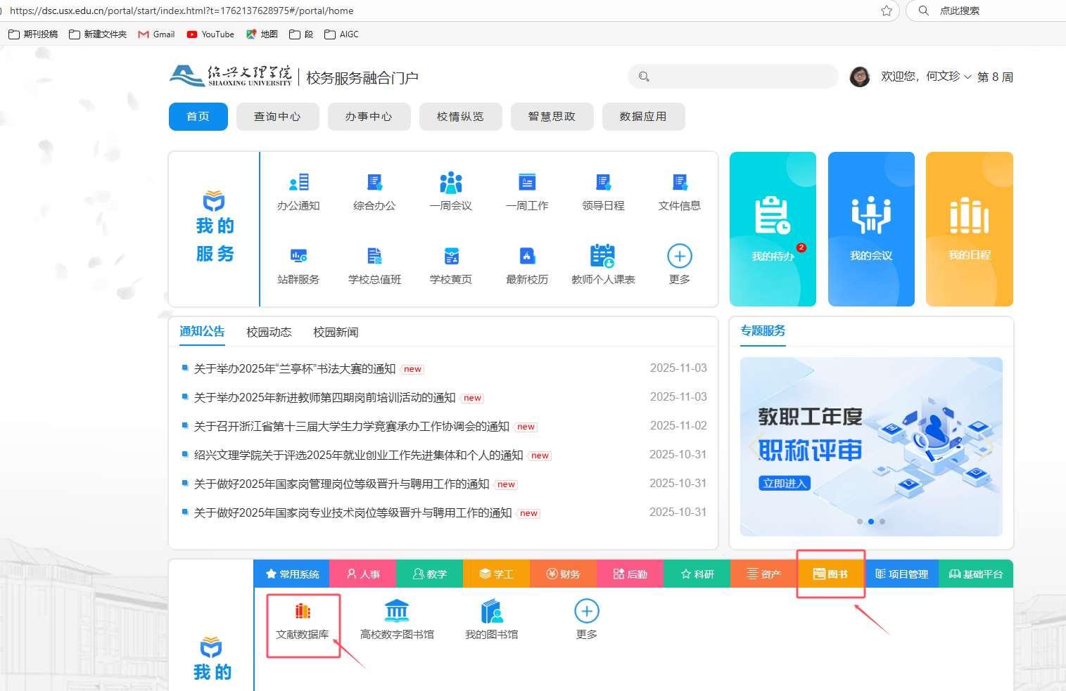 2.登录后的界面如下图所示,点击“图书->文献数据库”