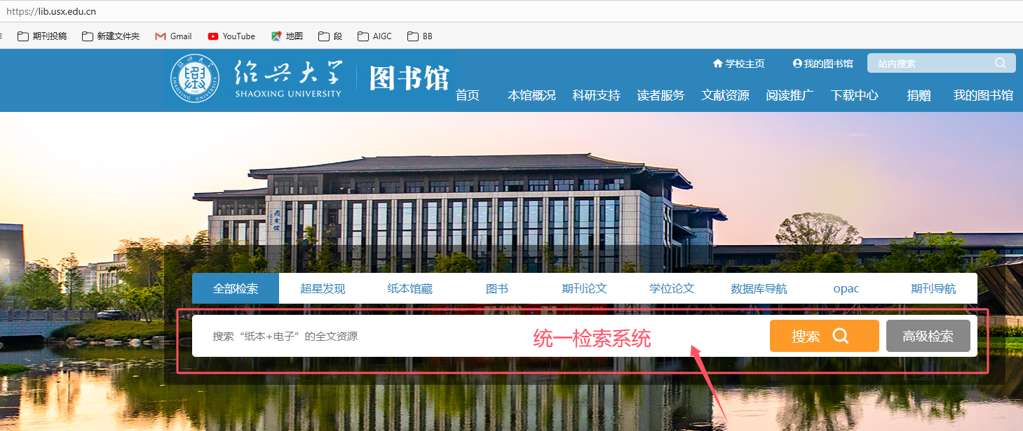 (1)在图书馆首页检索框中输入检索词,如下图所示: