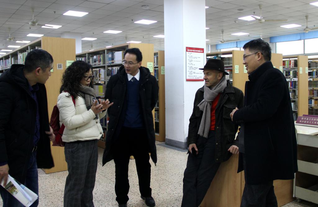 1月4日,法国图卢兹商学院(ToulouseBusiness School)巴塞罗那校区Olivier Benielli校长在张宏副校长的陪同下来我馆参观考察。舒炎祥馆长向客人介绍了图书馆概况,演示了图书自助借还过程,介绍了图书馆订购的国内外数据库种类。Olivier Benielli 教授一行参观了书库,了解商科纸质文献收藏数量。还考察了自修室,了解了学生自修情况。