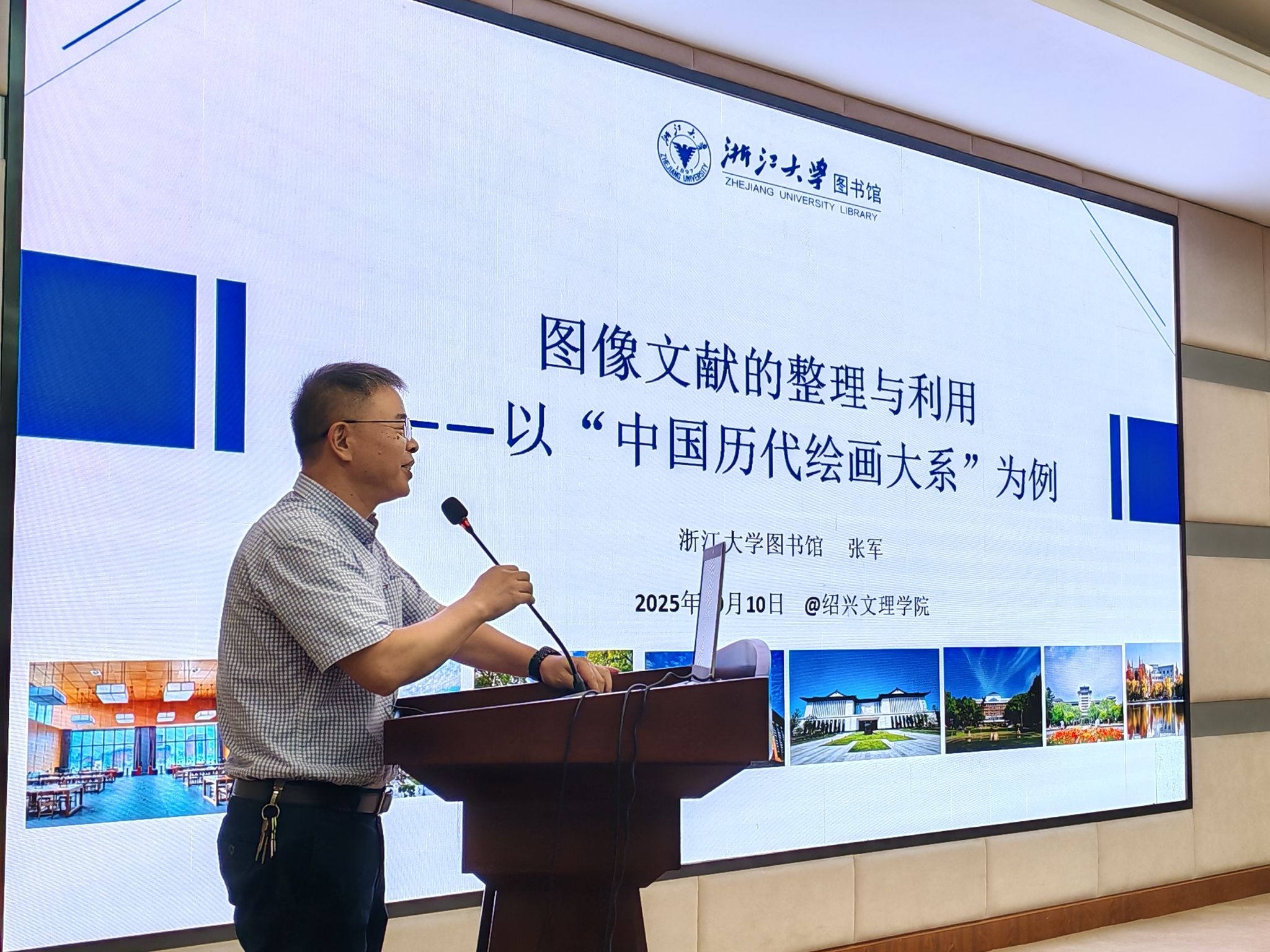 浙江大学图书馆资源发展总监张军则聚焦 “图像文献的整理与利用”,以《历代绘画大系》为典型案例,详细介绍了图像类传统文化文献的数字化整理方法,阐释了其在学术研究、文化传播中的重要意义,并深入探讨了中华优秀传统文化资源在图书馆领域的建设与利用路径,强调了文化自信与文化育人的重要价值。