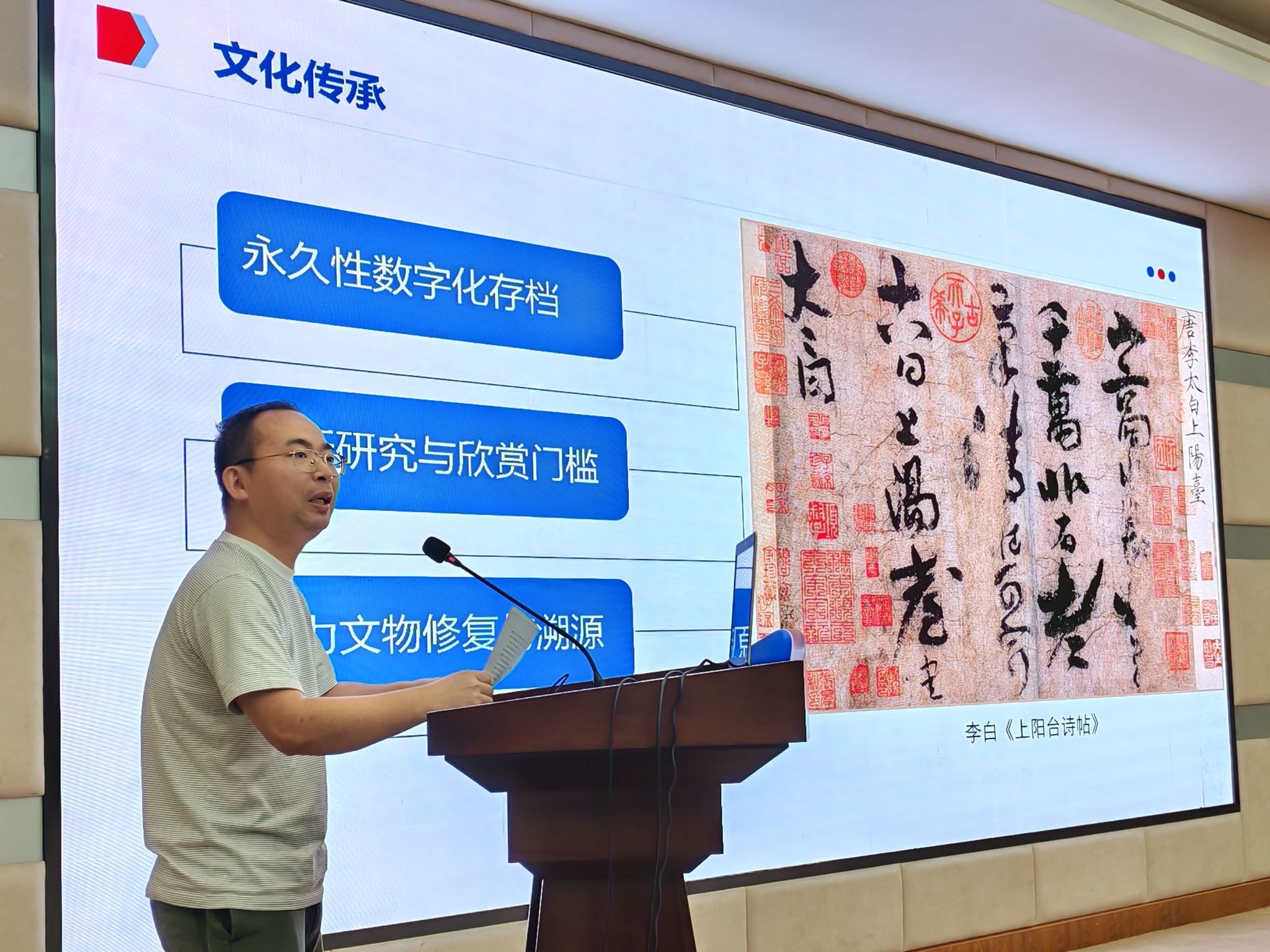 我校兰亭书法艺术学院李群辉博士则围绕“数智时代书法数据库建设初探”展开探讨,系统分析了当前书法资源数字化的发展现状与技术瓶颈,创新性地提出了多模态融合书法数据库的建设设想,为书法这一传统文化瑰宝的数字化传承贡献了专业智慧。